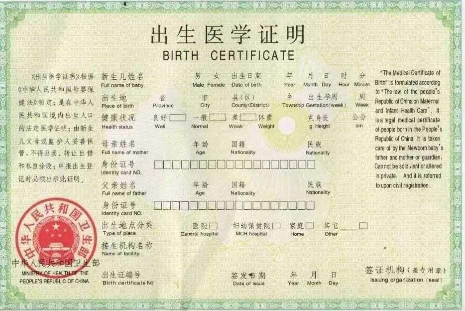 ● 出生证明:如果未成年人和监护人不在同一个户口本则可以用出生证明来证明监护人和未成年人之间的监护关系,我们需要这项材料来证实您确实对未成年人有监护关系;