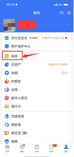 1.请先在手机上登录扣费的支付宝APP,进入“账单”页面。