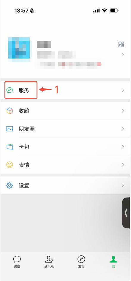 1.打开微信-“我”-“服务-“钱包”。