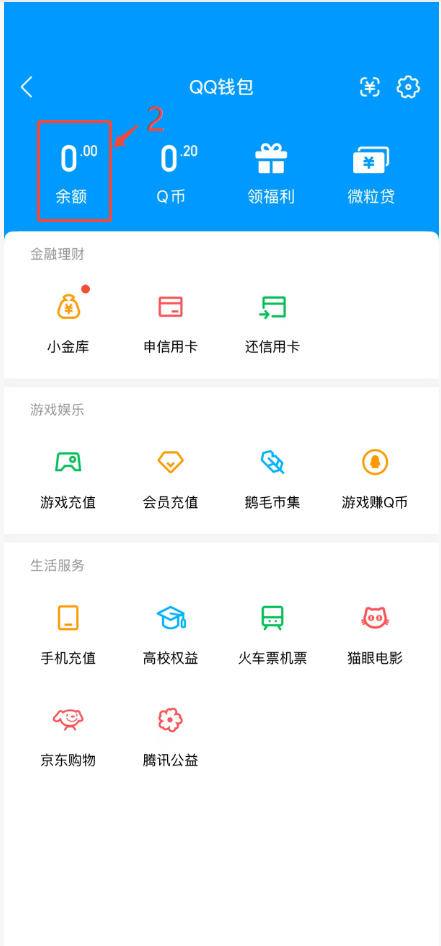 2.进入QQ钱包后,点击余额,选择余额右上方的账单。