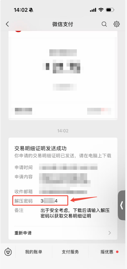 6.验证成功后,微信支付公众号24小时内会给您发送账单流水文件,届时您可以点击查看详情查收您的流水记录了。