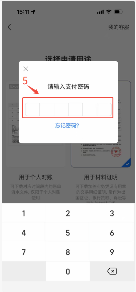4.因账单涉及个人隐私,支付宝官方需要您输入支付密码验证您的身份。