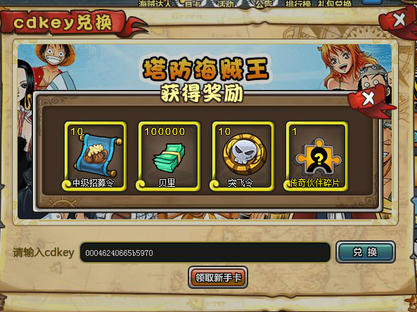 3、活动激活码只能在《4399塔防海贼王》中兑换使用 4、同一个账号只能兑换使用一次激活码 5、领取成功之后,道具将直接发放至背包 6、领取激活码如未及时记录和复制,请再次在领取地址登陆账号记录或者复制领取。